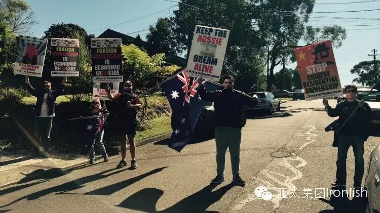 两周前,在悉尼下北岸的几处拍卖现场附近,有一群示威者扛着标语牌和旗帜,反对外国人买澳洲的房产。