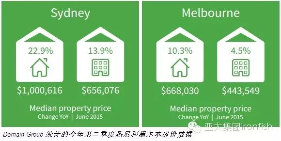 根据澳洲房产信息网站Domain今年第二季度发布的数据,悉尼别墅的中位价已经突破100万澳元,赶超纽约和伦敦,年增长率达22.9%;墨尔本的别墅中位价也已接近67万澳元,年增长率达10.3%。