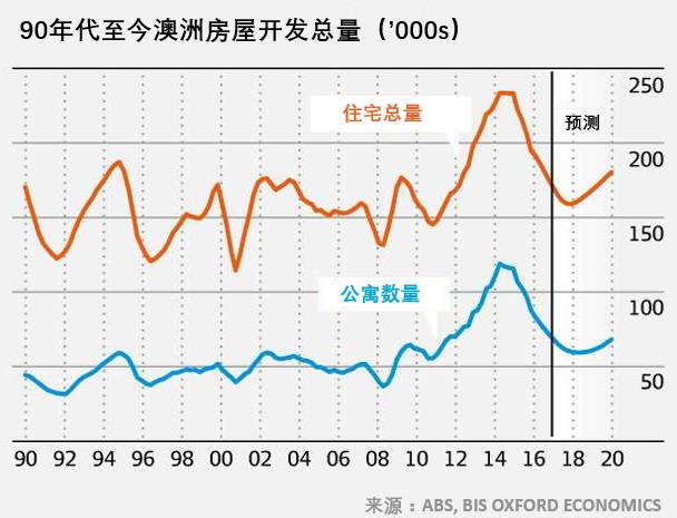 澳洲房产调研机构BIS Oxford Economics的执行董事Robert Mellor在接受媒体采访时表示,预计2017-2018年将是全澳范围内高密度公寓完工的最高峰,但在随后的两年里,公寓完工的数量将减少50%以上。同时他还表示,预计未来新建公寓的开工量,将比人们预计的更少。