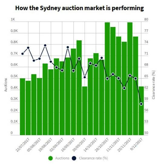 事实上,从2017年10月28日起至今,悉尼的周末二手房拍卖率再也没有站上过70%的大关,而70%的清拍率,通常被视作市场冷热的标杆,高于这一数字代表卖方市场,房源紧俏,而低于这一数字,则说明市场比较冷清。