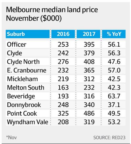 (墨尔本部分区域过去一年的土地价格涨势惊人。图片来源:AFR)