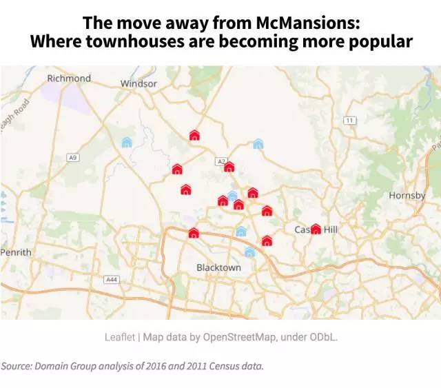 以西北区最大的购物中心所在的区域Rouse Hill为例,五年前这里90%的房产是独立屋,中位价在70万澳元,而如今独立屋在这里比例已经下降到60%,而中位价已经上涨到115万澳元。