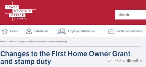 而如果要给今年以来澳洲各地房产新政的受关注程度做一个排名的话,那三月份由维多利亚州政府出台的“首次置业津贴及印花税政策修改”无疑是诸多变化中的“重磅炸弹”。目前,维多利亚州税务局的网站上,也将这一变化专门做了一个专栏,放在了网站首页的显要位置。