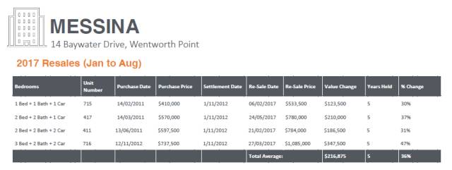 (2010年,亚太集团在悉尼的Wentworth Point推荐的项目MESSINA,当时该地区属于典型的新开发区,两房两卫的公寓不到60万。如今区域开发日趋成熟,2017年最新Resale价格在78万左右)