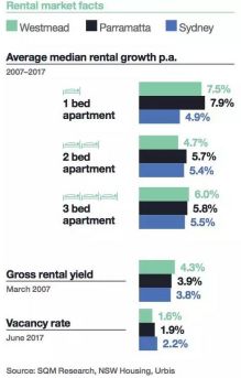 由于背靠Westmead医院及大学等机构的优势,Westmead区域的租房市场同样回报喜人。