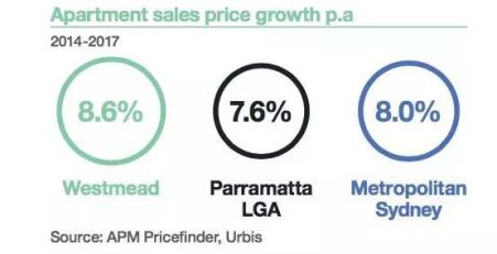 根据房产咨询机构Urbis的报告,过去三年,Westmead地区的公寓价格年均涨幅达到了8.6%,超过了Parramatta地区7.6%和大悉尼地区8.0%的增幅。