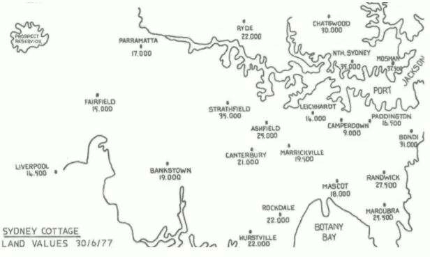 当时,全悉尼最贵的区是Strathfield,独立屋的中位价为65,000澳元,比如今大受欢迎的Chatswood,Mosman要高出许多。这与我们今天看到的离CBD越近,房价就越高的现象完全不符。