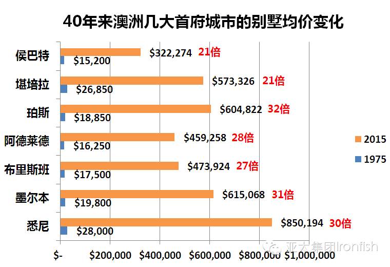 如果按照这一历史数据推算的话,40年后悉尼的别墅均价将达到2550万,墨尔本和珀斯将达到1900多万,布里斯班和阿德莱德要达到近1300万!