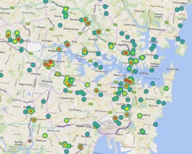悉尼的工程吊车主要分布区域(图片来源:AFR)