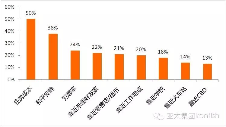 结果显示,一千多名受访者中,有一半人将住房成本作为最关键的考虑因素;接下来他们会看居住区的安静程度、犯罪率、是否靠近超市、工作地点或火车站等因素。