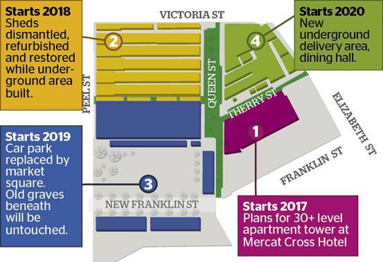 - 在当前市场区域的地下部分修建停车场和仓储空间。